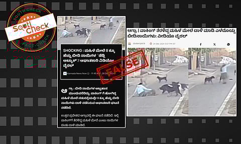 ಕನ್ನಡ ನ್ಯೂಸ್ ನೌ ಡಿಸೆಂಬರ್ 26, 2024 ರಂದು ವೈರಲ್ ವೀಡಿಯೊದಲ್ಲಿರುವ ಸ್ಕ್ರೀನ್ ಶಾಟ್ ಬಳಸಿ ಸುದ್ದಿ ಪ್ರಕಟಿಸಿದ್ದು, ‘‘ಬೀದಿ ನಾಯಿಗಳ ಅಟ್ಟಹಾಸ ಮುಂದುವರೆದಿದ್ದು, ವಾಕಿಂಗ್ ಗೆ ಹೋಗಿದ್ದ ಮಹಿಳೆ ಮೇಲೆ ನಡುರಸ್ತೆಯಲ್ಲೇ 8 ಕ್ಕೂ ಹೆಚ್ಚು ಬೀದಿ ನಾಯಿಗಳು ದಾಳಿ ನಡೆಸಿರುವ ಆಘಾತಕಾರಿ ಘಟನೆ ನಡೆದಿದೆ. ಉತ್ತರ ಪ್ರದೇಶದ ಆಗ್ರಾದಲ್ಲಿ ಈ ಘಟನೆ ನಡೆದಿದೆ’’ ಎಂದು ಬರೆದುಕೊಂಡಿದೆ.