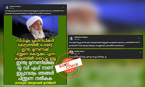 പ്രചാരണം വാസ്തവവിരുദ്ധമാണെന്നും കാന്തപുരം ഇത്തരത്തിലൊരു പ്രസ്താവന നടത്തിയിട്ടില്ലെന്നും സൗത്ത് ചെക്ക് അന്വേഷണത്തില് കണ്ടെത്തി.