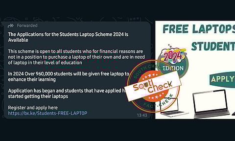 വിദ്യാര്ത്ഥികള്ക്ക് സൗജന്യമായി ലാപ്ടോപ് നല്കുന്നുവെന്ന തരത്തില് സന്ദേശം സമൂഹമാധ്യമങ്ങളില് പ്രചരിക്കുന്നു. പ്രധാനമായും വാട്സാപ്പില് പ്രചരിക്കുന്ന സന്ദേശത്തില് രജിസ്റ്റര് ചെയ്യാനുള്ള ലിങ്കും നല്കിയിട്ടുണ്ട്. ഈ വര്ഷം ഇതിനകം പത്ത് ലക്ഷത്തോളം പേര്ക്ക് പദ്ധതിയിലൂടെ ലാപ്ടോപ് ലഭിച്ചതായും സന്ദേശത്തില് അവകാശപ്പെടുന്നു.