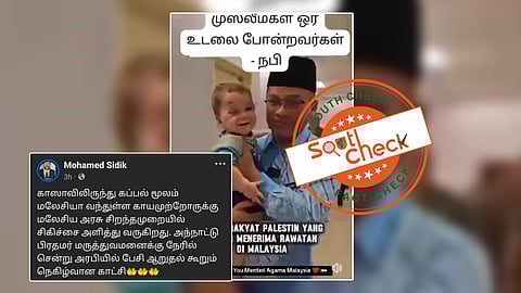 “காஸாவிலிருந்து கப்பல் மூலம் மலேசியா வந்துள்ள காயமுற்றோருக்கு மலேசிய அரசு சிறந்தமுறையில் சிகிச்சை அளித்து வருகிறது. அந்நாட்டு பிரதமர் மருத்துவமனைக்கு நேரில் சென்று அரபியில் பேசி ஆறுதல் கூறும் நெகிழ்வான காட்ச” என்ற கேப்ஷனுடன் நபர் ஒருவர் மருத்துவமனையில் உள்ள குழந்தைகளுக்கு ஆறுதல் தெரிவிக்கும் காணொலி ஒன்று சமூக வலைதளங்களில் (Archive) வைரலாகி வருகிறது.