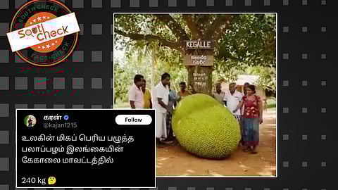 இலங்கையின் கேகாலை மாவட்டத்தில் உலகின் மிகப்பெரிய பலாப்பழம் விளைந்துள்ளதாக சமூக வலைதளங்களில் (Archive) காணொலியுடன் தகவல் வைரலாகி வருகிறது. அதில், மிகப்பெரிய பலாப்பழத்தின் காட்சி பதிவாகியுள்ளது. மேலும், அப்பழத்தின் எடை 240 கிலோ என்றும் குறிப்பிடப்பட்டுள்ளது.