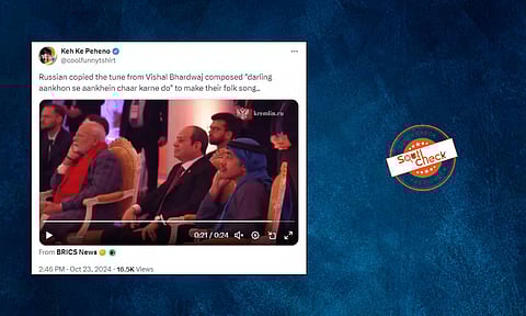 2011లో ప్రియాంక చోప్రా జోనాస్ నటించిన బాలీవుడ్ చిత్రం 'సాత్ ఖూన్ మాఫ్' లోని ఓ సాంగ్ ప్లే చేశారని ఆ వీడియోను షేర్ చేస్తున్న వ్యక్తులు తెలిపారు. ఈ సాంగ్ ను సినిమాలో విశాల్ భరద్వాజ్ కంపోజ్ చేశారు. "డార్లింగ్ ఆంఖోన్ సే ఆంఖేన్ చార్ కర్నే దో" సాంగ్ అప్పట్లో భారీ హిట్. ఆ హిట్ సాంగ్ కు సంబంధించిన పాట ట్యూన్ ను బ్రిక్స్ సదస్సులో ప్లే చేశారని ఆరోపించారు.